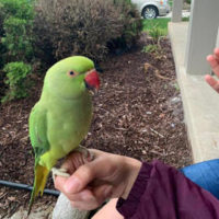 We lost our parrot , her name is “Kiwi”, very sweet bird about 2 years old..she says a few words like “hi Kiwi”, “I love you”, “give me kiss”