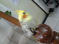 She is very friendly, always loves to hangout in your head, whistle a lot if she wanted to go out of her cage. Loves to play with her toys and shouting while playing with it.