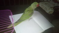 My Parrott is 5 month old, there is a scar on his head and right side of features. His name is miku, if anyone found him please contact.