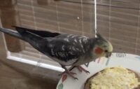 Gray with white tips orange cheeks. Name is Spikey very friendly….He likes to talk…Good morning Roseann What’s going on…..Who’s a Good Boy I love you……