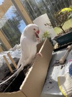 Albus is 1.5 years old, inexperienced flyer that is still shy of people. He’s very chatty and says many things.