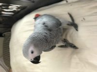 She is a two year old African grey. Her tails are in red color. Her name is katelyn.