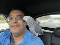 Angel, nickname Koko, we lost him New Year’s Day in our community, when he took off my wife hands as she fell on the ground.he is grey with red tail (has some black at the end of the red tail).