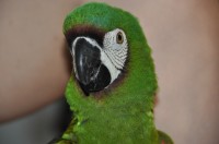 Female Severe Macaw. 3 years old. Friendly only with owners. Does not fly.