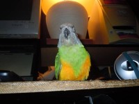as my dog was coming back in from doing her biz my senegal parrot flew between my legs and out the door as i was putting food in his bowl.