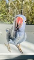 Blue Indian ringneck, likes to scream “WHAT DOING KIWI?!” And “PEW-PEW”