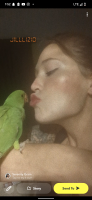 African Ringneck small-medium green feathers very friendly wings were clipped once line of demarcation where they’re growing back but she can fly pretty well orange ish red beak with little bit of black on the tip of her wings very friendly lost on Miami Beach.