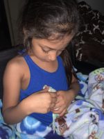 Her name is Rosa she is a very sweet bird she is light gray with a baby blue chest and on the back is was my daughter emotional support