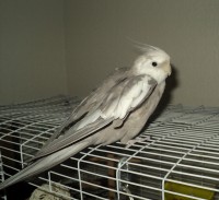 Very friendly and outgoing bird – wings were clipped but are growing back. No colors whatsoever besides gray and white. Very loved – we miss him very much.