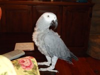 Darwin is a African Grey Congo. He can talk says his owners names, Steve, Dan, Alex, Mer and whistles for the dog Charlott. He says Trick or Treat, Merry Christmas, good morning. Love corn, wants some cereal, see you later, I love you and no. Says many other words. He likes fruit. Is attached to owner not comfortable going to other people. He was last seen on Sunday, Oct 9 on Campton Trail Rd in St. Charles IL near Wasco. He has a band on his foot.