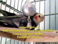 REWARD Still LOST: MS, Brandon, Grey Cockatiel ‘Rollo’ 7-19-13