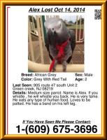 STILL LOST NJ Green Creek Congo African grey ‘ALEX’ OCT 14-14