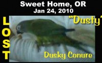 street and flew into the trees on the hill. If you have seen or have found Dusty