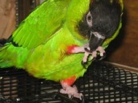 STILL MISSING Sep 16-14 My name is Jack and I need you to please help me. I’m scared and I’ve been lost for so long that I’m getting scared I’ll never see my Mommy again. I’ve tried, but I just haven’t been able to find my way back to my Mommy all by myself. I hope you can help me find my Mommy so I can get back home. I was sitting on my Mommy’s shoulder on June 13th and I was frightened when she tripped. She’s not very coordinated, but I still love her a whole bunch. I had not flown before (and wasn’t very good at it). I did not know that I could fly so far. I didn’t mean to get lost, but everything looks so unfamiliar to me. I’m very afraid out here on my own. I really want to get back home, as I miss my Mommy very much and I’m sad that I’m away from her. She loves me a whole lot and takes really good care of me. I know she must be really sad too. I even miss my stupid cat, Betty. I’m a parrot, but people call me a Nanday Conure. I’m just a baby, as I’m only 14 months old. My Mommy says I’m a really good boy. I’m mostly green with a black face, black beak and white circles around my eyes. I’m about 12 inches long and have long tail and flight feathers that are mostly blue and green with some black. My wing span is 11 inches. My upper chest is a bluish-green, and my lower chest area is a pale green. My legs have bright reddish-orange feathers and my feet are flesh colored with black nails. My Mommy says I’m very cute and handsome. I haven’t learned to talk yet but when I hear my Mommy get up in the morning, I try my best to make a kissing sound as I think she likes that more than coffee. I do have a very loud squawk(http://www.xeno-canto.org/52762) and squawk especially loud when I get tired at night and my Mommy asks me if I want to go “night-night.” I’ve not been around a lot of strangers, so I may be scared, but I’m still hoping you will help me. I’m very afraid of loud noises and unfamiliar sounds, so I want to get back to my Mommy. She always makes me feel better and safe and secure. If you see me or if you know someone who has seen me or has taken me in to help me, would you please contact my Mommy? Thank you for trying to help me find my way back home. Your Friend, Jack Jack – my beloved Nanday Conure – was lost near Spotswood Furnace Road and Secca Drive in Fredericksburg, Virginia around 8:00 p.m. on Friday, June 13, 2014. “Jack” is an indoor bird and flew off when spooked while on my shoulder when I was taking out the trash and tripped. His wings had been clipped, but apparently not recently enough. He spent Friday night and until 6:00 p.m. on Saturday at the top of a 50-foot tree on the outskirts of the woods behind 15204 Spotswood Furnace Road. He flew into the woods across the street near the top of the tree in front of a home on Spotswood Furnace Road. After an hour, he flew into the woods behind this home, which also border Secca Drive. He stayed in this tree from 7:00 p.m. on Saturday until 4:00 p.m. on Sunday. At 4:00 p.m., he flew into the woods in front of the home at 15212 Spotswood Furnace Road where he stayed Sunday night and was heard in these same woods Monday morning. He does not sound like other birds, as he squawks very loudly, like a scream. Jack is approximately 13 inches long and is mostly green in color. He has a black face, black beak, black trailing flight feathers on his wings, and a long black tail which is blue at the end. His upper chest is bluish-green and his lower chest area is a paler green. The feathers covering Jack’s thighs are red. Jack is banded, and I will be happy to provide complete band information to identify him If you see him, please call (703) 232-6382 as he is too frightened of other people for you to catch him (plus, he’s spending time in trees too tall to climb). Thanks so much for your help in finding him, or providing assistance on his exact whereabouts. My heart is just breaking with worry about him, as I love him so very, very, very much