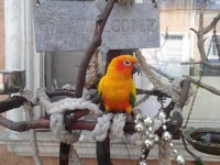 . The last update i heard from him was on 4/20/2012 a kid had told me that a man at the Cesar Chavez park (in Southern Ave / Long beach) had him in a cage trying to sale him . He is not a big bird her kinda is the size of a cockatiel with a long tail as well with beautiful yellow, blue, green & orange markings. He also bobs his head a lot when you talk to him and moves his head side to side.