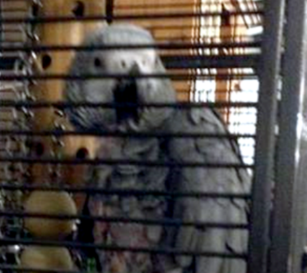 The African Grey called Jak, who has featherless patches on his chest and neck due to plucking, was taken from a property in Stable Walk.