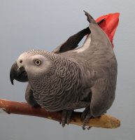 He talks but will likely be reluctant with people he doesn’t know. He knows his name. He is strong-willed but loves attention and neck rubs. If you don’t do it just right, he will object, but he is never vicious. He’s a huge sweetheart. He has a huge cage and has needs so I’d really like to get him back.