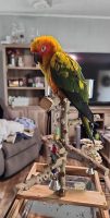 Flew out the door the morning of Sunday 4/28/24 in Tahlequah OK. Park Hill road and Willis area. She is a young bird around 3 months old. I was bringing in my groceries tried to stop her but when I dropped my groceries it jammed the door open and she flew right on out. At the time she went missing she sounds like an Indian ringneck as she was raised with them. Her wings were not clipped. I heard her briefly short after she flew off and then nothing. It was raining and cool at the time.