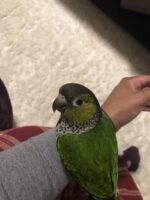 He has red feathers on his wings and belly as well, he is 75 grams. His wings are not clipped. “He will approach for a cracker and that there will be a $500 reward for his return”. Thank you.