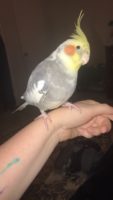 Fiji is very easily spooked and doesn’t like other people…he also answers to “Chicken”. He is very sweet but will bite when scared. He flew away near 45th and Virginia/Western in Amarillo. He has a metal band on one leg but I do not have the number..the band is for a breeder in Florida.