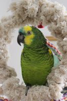 Dolly is very friendly. She talks and sings. Loves women and will land on your shoulder. Dolly was my mom’s bird and mom passed away a month ago. She was hand raised. She is not afraid of dogs. She has a band but I will have to locate paperwork if able, to provide number. I can identify her with certain phrases and songs that she knows.