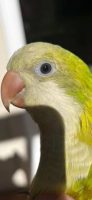 He is a green pallid quaker parrot, so he is more of a neon green/yellowish quaker parrot. He is smaller than most quakers, only about 60g. He just grew in his flight feathers which are blue underneath his wings. He has some yellow/brown colored blotches over his back feathers and has cream/white belly and forehead feathers. He says a few words and phrases in English and is friendly with humans but doesn’t follow the step-up command, so it’s easier just to pick him up using your hand over his back and he will just sit in your palm belly-up. He has a silver leg band that starts with ‘LMF LA’ (owner will supply complete band information) Please contact (832)468-5304 if you have any information or for any possible sightings of a (pallid) green quaker parrot. He was last seen in Greater Inwood area of Northwest Houston, but may have travelled to other areas in the greater Houston area. There is a reward if found.