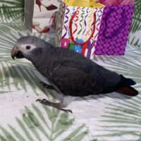 Rosie is a one year old African Grey. She has a maroon tail and a black beak with lighter at the top. She is banded. She flew out around 12:30 and we have no idea where she went if anyone sees her please call us we are heartbroken. We are offering a CASH reward to anyone who finds her.