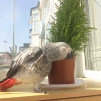 Tiboule is quite petite for a 4 years young grey. She is very light, and sleek. She has feathers growth on the chest, and has the habit to chew her right wing where the feathers will be missing. She responds to Tiboule, Pepi, Come on Come on, Papa Kiss Papa Kiss, night night, babye Tiboule, and whistles. She can be very shy to strangers. She loves biscuits and snacks. She was on antibiotics when she flew off. We desperately want her home.