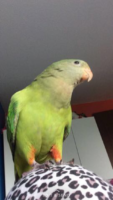 Willow is a young bird he is mostly green but has red legs a greyish tint to his face, turquoise/blue wings and brown/black eyes and only eats special food I buy from abroad so if you see him please contact me asap