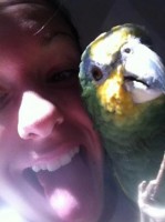 He has yellow on top of his head and orange on his wings, but is mostly green. He is very friendly, but may be very scared. His family loves him so much and I am so devastated. I need him to come home please, If anyone has seen him, please please contact me. 518-258-4381 I am offering a reward.$1000.00