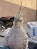 Iām a gray cockatiel with light orange cheeks and white spots I will be 1 month this year and go by the name sofie