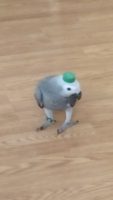 He loves red straws and bottle caps.does a whistle like a pretty lady just walked by