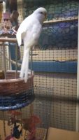 She is mostly white, but I noticed very light not too visible aqua colored feathers near the rump.