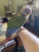 Green Cheek Conure, Female, 6 months old. She answers to her name and is friendly. She will come to you and land on your arm or head. Please contact me at: 928-848-9323.