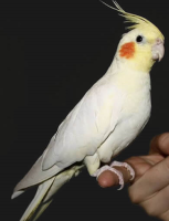 Yellow Lutino Cockatiel, tamed, will fly to person’s head or shoulder. Can be grabbed.
