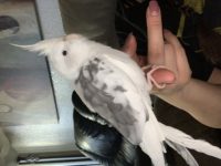 He escaped on Nov 24, 2018 from our back door patio slider. He is very friendly. Mostly white in color with some gray markings. He does talk a little bit and mimics sounds.
