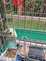 Wings not clipped. He is blue with a yellow tail… he is very friendly if there is food.