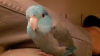 Blue Pacific Parrotlet with no legband and unclipped wings.