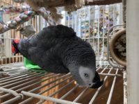 Georgie is a shy bird, whistles the Addams family theme song, imitates Mickey mouse. Will step up on command. He is an excellent escape artist and managed to get his door open while we were in the garage. I had moved them to the garage as they were stripping the floors. He is about 12 years old.