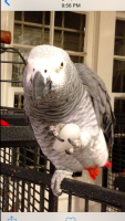 7 year old male African Grey Congo named “Pierre”. Solid grey with red tail. Has some chipping/cracking on his beak. He is a nervous bird and does not like to be held, but allows to be petted. Never trained/learned to step up/down due to nervous apprehensive behavior.