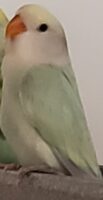 Baby lovebird with light pastel yellow head and pastel minty green wings and back.