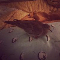 Prangle is a juvenile hand-raised and tame mourning dove. He flew off on the morning of Saturday August 27th 2016 near Lake Murray and I haven’t seen him since.