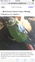 Timid, quiet, friendly Green Cheek Conure named Mochi.