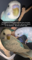 Ellard is primarily white on the top side of his body and a blue underside, has light grey details on his back