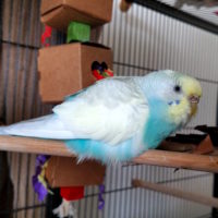 She is pale yellow on her face, light blue on her chest and back, and has pink nostrils.