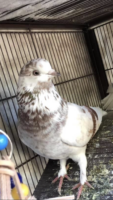 Pigeon- mix breed. Young Female. white with brown splashes. Semi-tame.