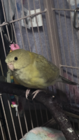 Green Red Rump (has a hint of yellow on her back). Female. About 10months old. Not fully flighted, flight feathers haven’t fully come back. Not tame.