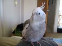 Luna is white and grey. Her wings are clipped but one or two ay have grown back in. She nervous around strangers, but tame. We love her very much and want her back with our family.
