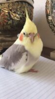 He is a male cockatiel with yellow head, mostly grey body, and a yellow tail. If you’ve seen him, please let me know. You can text/call me at 619-635-1048 .