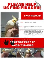 Hi Pikachu flew away after getting spooked by the gardeners lawn mower today 8:49am today outside our front patio.